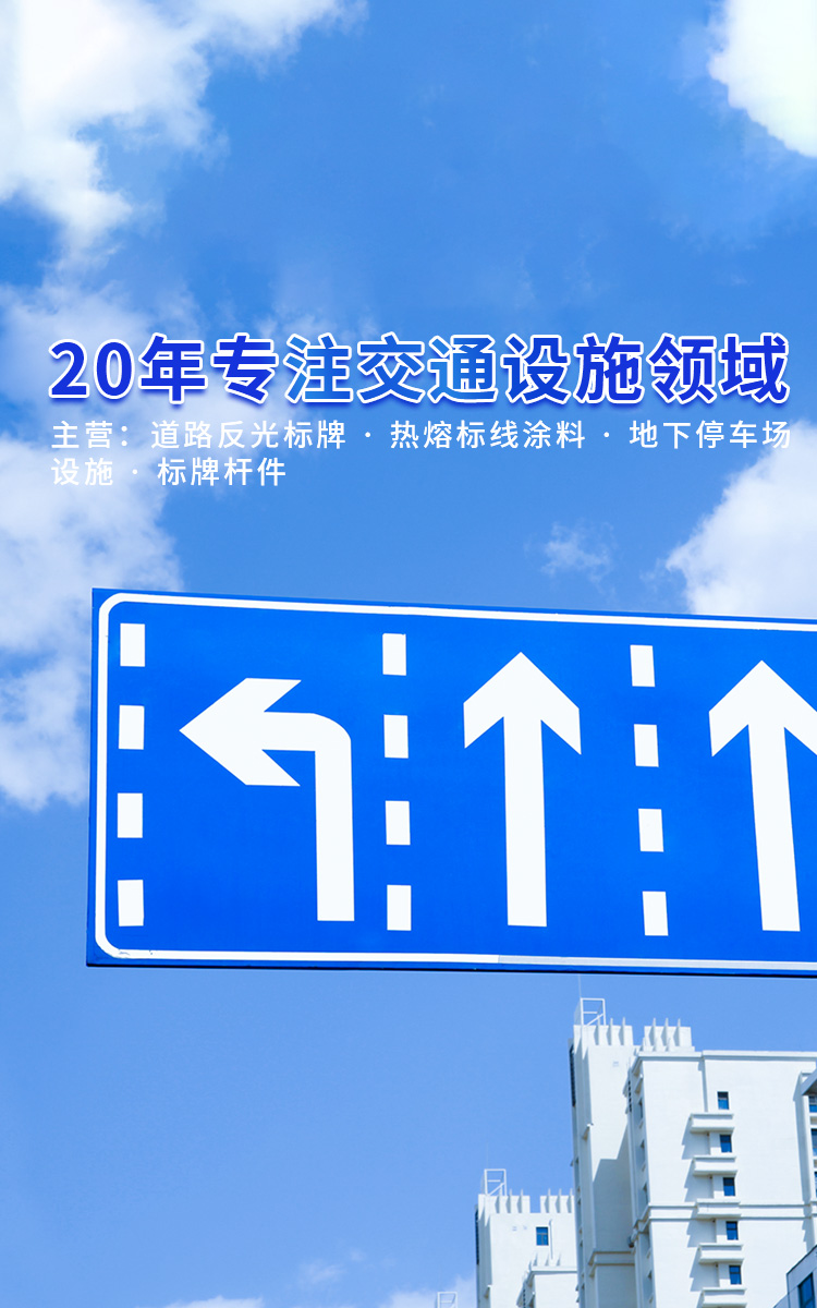 公司產品共有600多個品種,支持訂制各種規格產品。主營產品有:道路反光標牌、道路反光標線涂料、地下停車場設施、標志牌及信號燈桿件、反光材料、鋁板、交通安全防護、養護施工、市政隔離設施等。